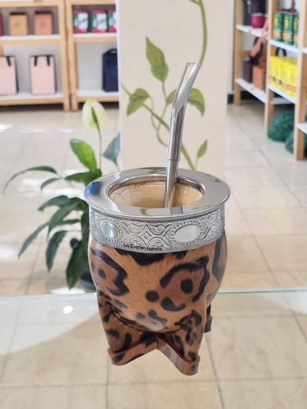 Mate Imperial Virola y Guarda Acero, Forrado en Cuero Animal Print