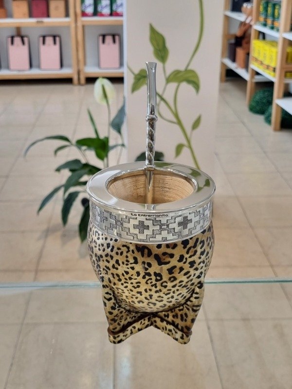 Mate Imperial en Alpaca, Forrado en Cuero Animal Print Metalizado