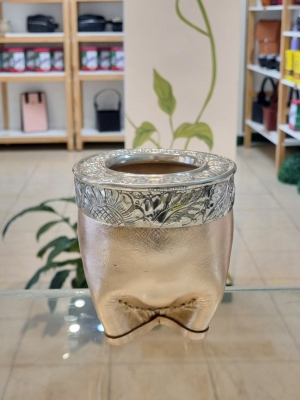 Mate Imperial Alpaca en Cuero Nude Metalizado