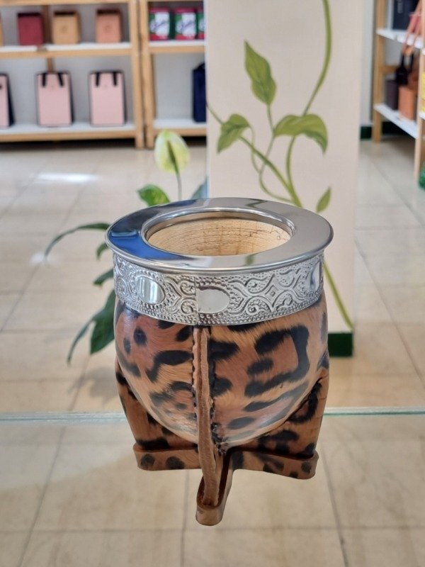 Mate Imperial Virola y Guarda Acero, Forrado en Cuero Animal Print