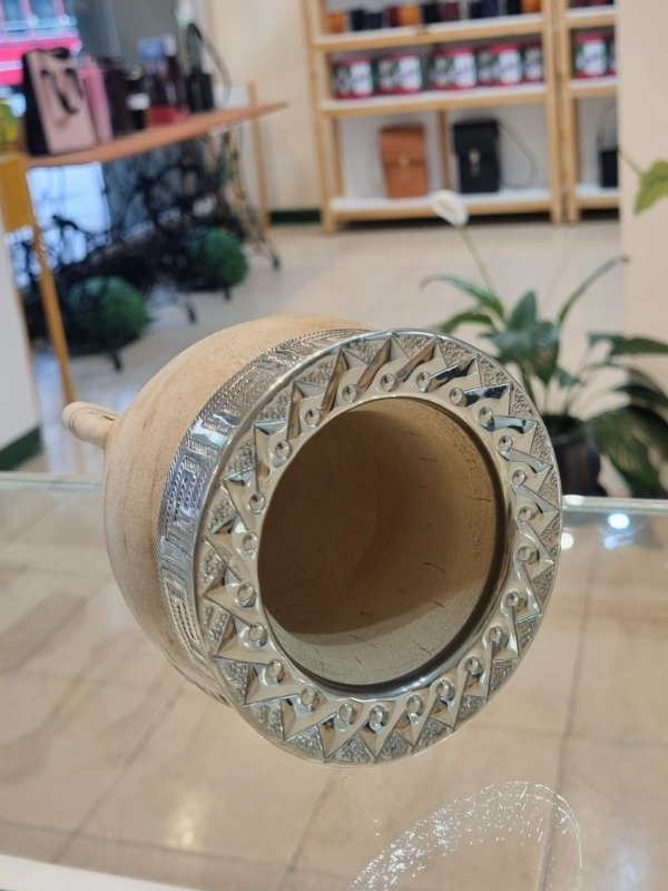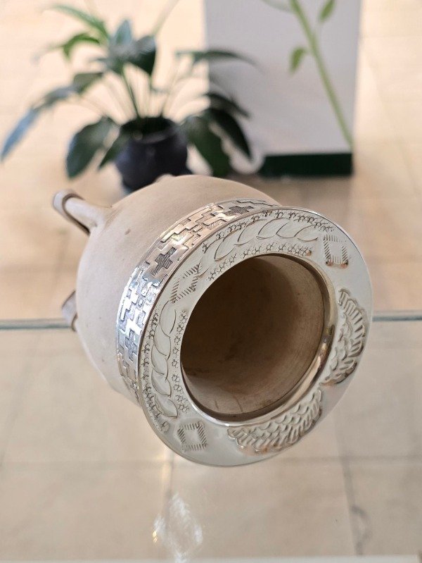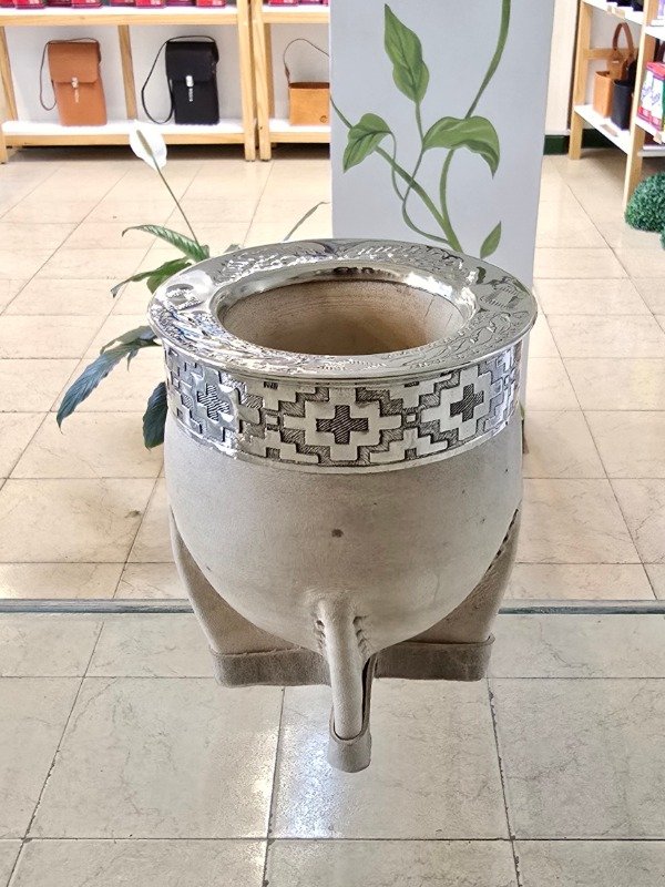 Mate Imperial de Calabaza, Virola de Alpaca Cincelada, Forrado en Cuero Crudo