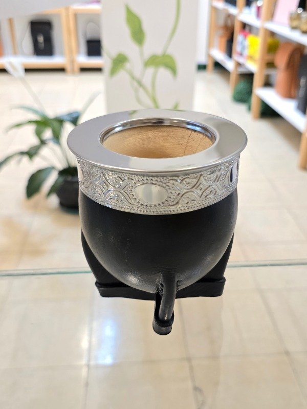 Mate Imperial de Calabaza con Virola y Guarda en Acero, forrado en Cuero Negro