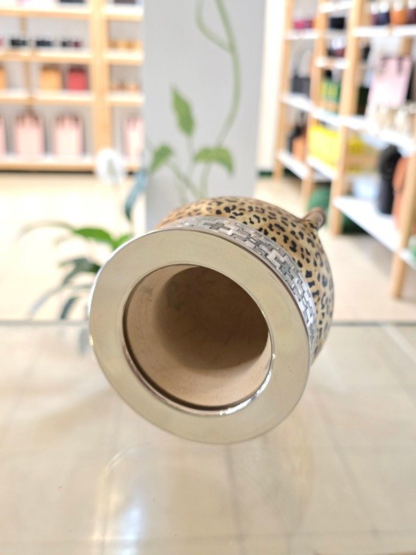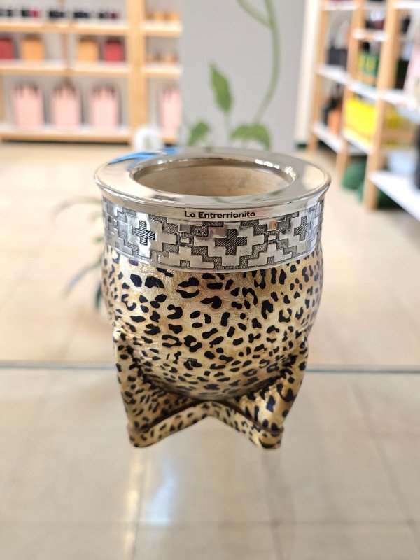 Mate Imperial en Alpaca, Forrado en Cuero Animal Print Metalizado