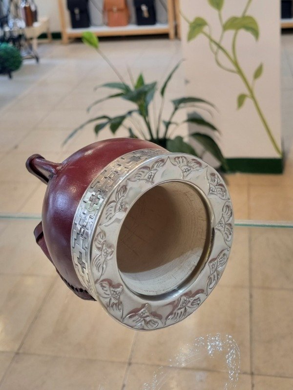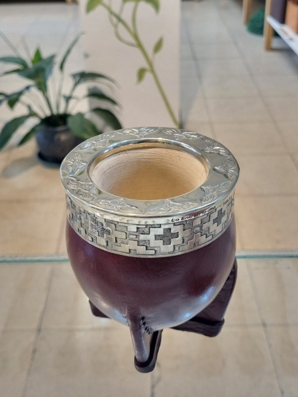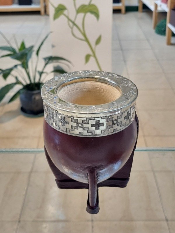 Mate Imperial de Calabaza, forrada en Cuero Marrón, con Virola de Alpaca Cincelada