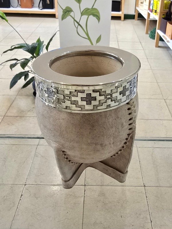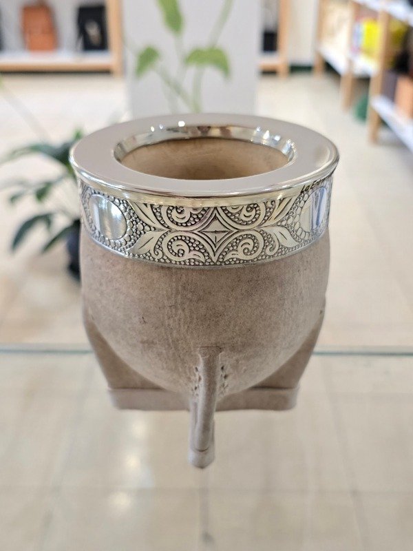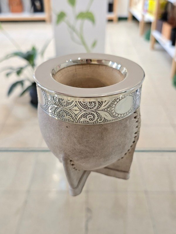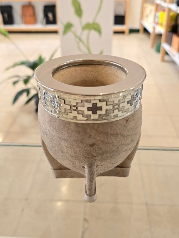 Mate Imperial de Calabaza forrada en Cuero Crudo de Diferentes Tonalidades, con Virola y Guarda en Alpaca