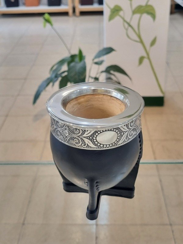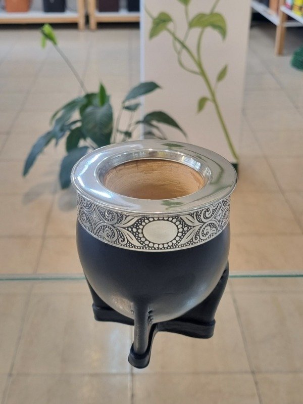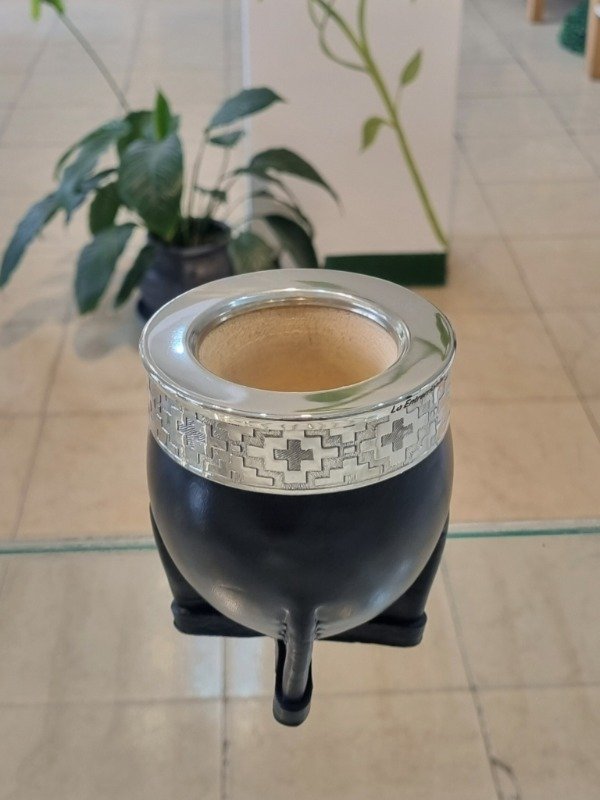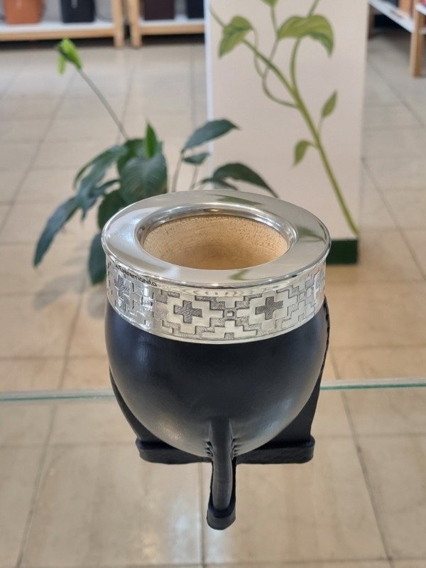 Mate Imperial de Calabaza, con Virola y Guarda en Alpaca, Forrado en Cuero
