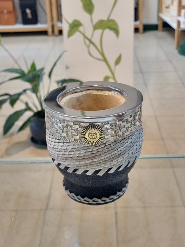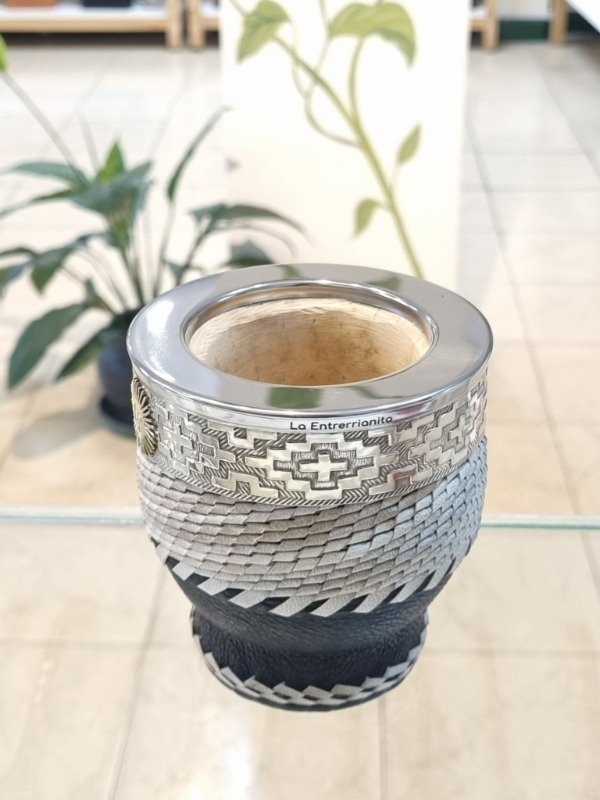 Mate Imperial Copita Cuero Trenzado, con Virola y Guarda en Alpaca