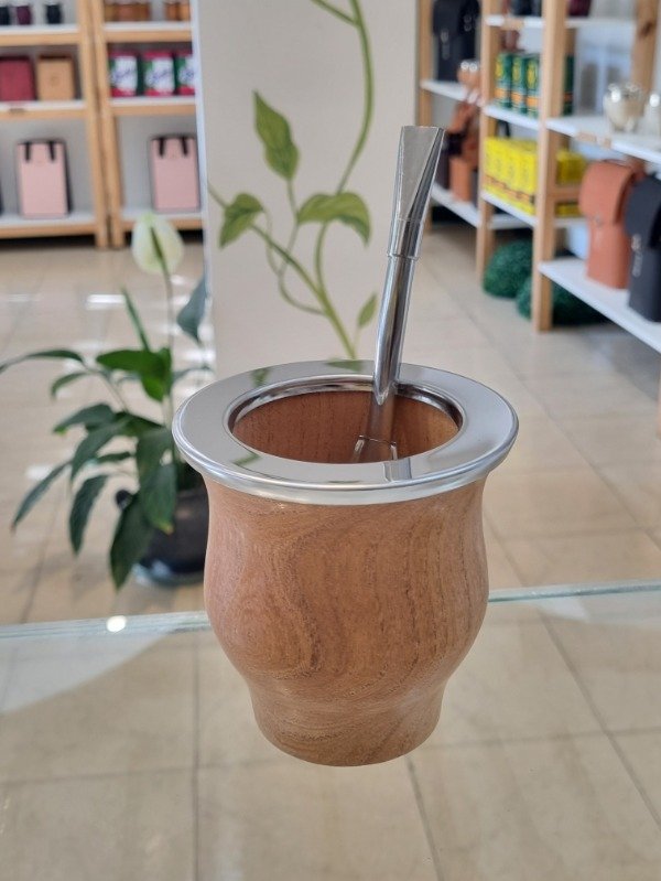 Mate de Camionero Algarrobo con Virola de Acero + Bombilla Acero Inoxidable, puede ser Pico de Loro o Recta según stock