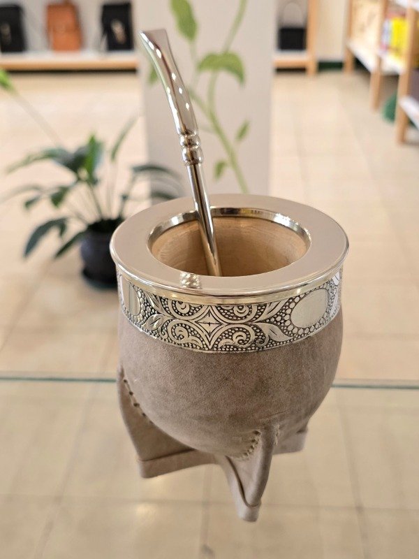 Mate Imperial de Calabaza forrada en Cuero Crudo de Diferentes Tonalidades, con Virola y Guarda en Alpaca