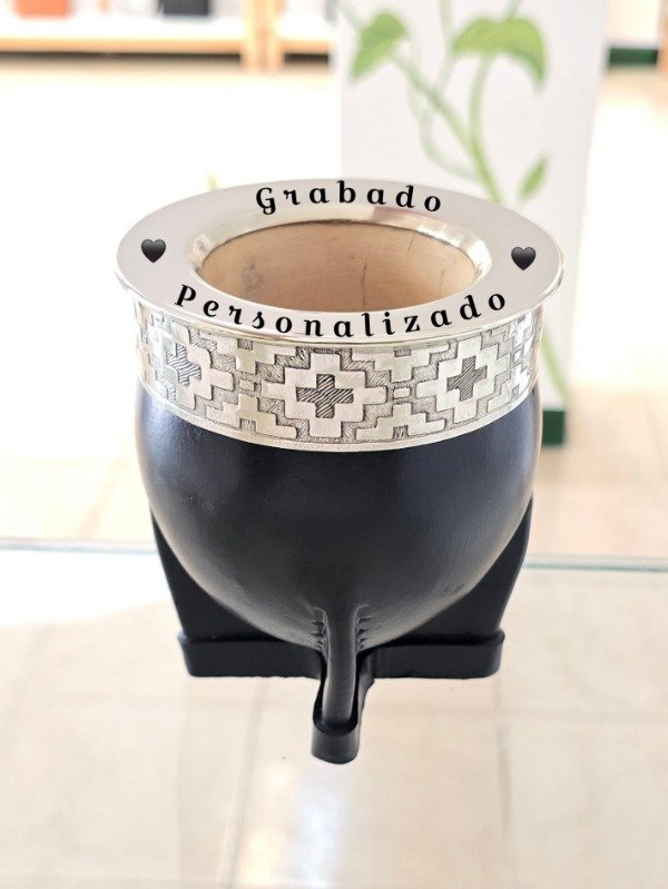 Mate Imperial de Calabaza, forrada en Cuero, con Virola y Guarda en Alpaca Diferentes Diseños
